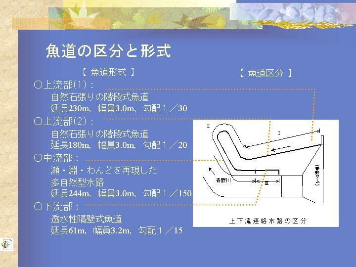青野ダム多自然型魚道整備事業 |